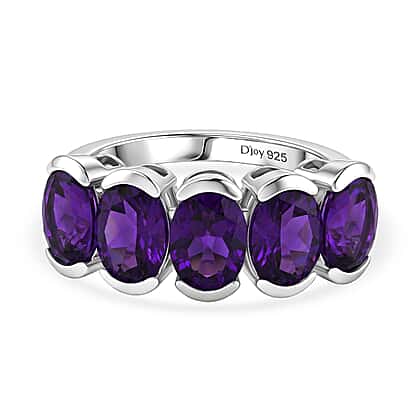 D'Joy AAA African Amethyst 5 Stone Ring in Platinum Overlay Sterling Silver 3.50 Ct.