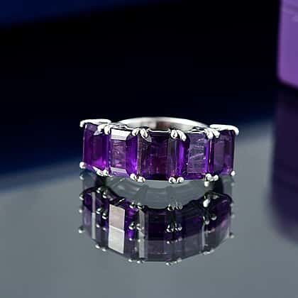 D'joy AAA African Amethyst 5 Stone Ring in Rhodium Overlay Sterling Silver 4.62 Ct.