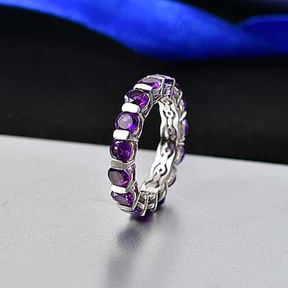 D'Joy AAA African Amethyst Band Ring in Platinum Overlay Sterling Silver 4.34 Ct.