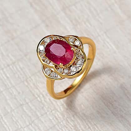 D'joy AAA African Ruby & White Zircon Ring in 14K Gold Overlay Sterling Silver 3.54 Ct.