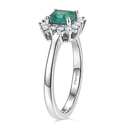 D'Joy AAA Gemfields Zambian Emerald & Lab Grown Diamond Ring in Rhodium Overlay Sterling Silver