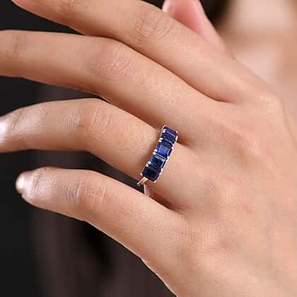 Colour lovers will enjoy this AAA kyanite 5-stone ring, offering a row of deep Kashmir blue. This enchanting ring features an array of 5 AAA-grade kyanite, valued for its saturated tone, clarity and rarity, especially when stones align so evenly. The five‑stone design represents balance and personal growth, making it an easy everyday choice. Set in platinum‑plated sterling silver, this beauty is hypoallergenic and tarnish‑resistant. Designed beautifully, this piece brings bold colour with a clean silhouette, perfect when you want richness without fuss.