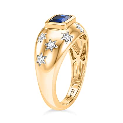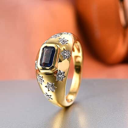 Set your sights on this AAA kyanite ring, designed to deliver striking blue with crisp sparkle. Laced with zircon rounds in star motifs, this ring features AAA-grade kyanite, highly valued for its intense royal hue and rare, glassy brilliance, brought forward by an octagon cut. Star design with encrusted white zircons adds sparkles that are hard to resist. Crafted from 925 silver base with gold plating, the dome is hypoallergenic, tarnish‑resistant and won’t turn green, ideal for sensitive skin. A tapered shank and secure prongs keep things comfortable. This jewellery piece showcases bold colour—select your size and enjoy the glow.