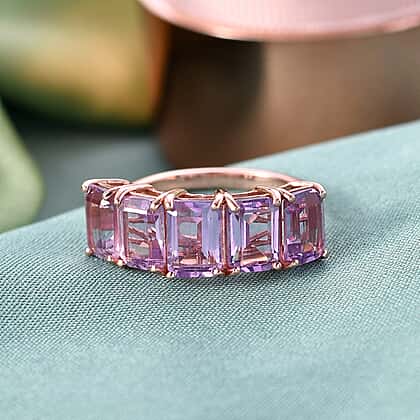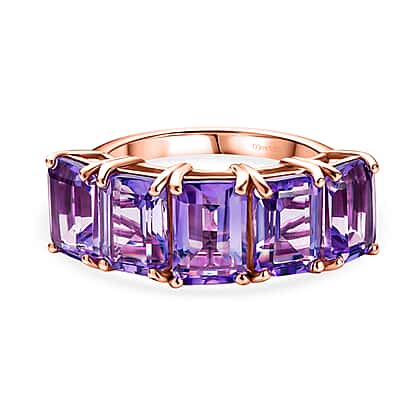 D'Joy AAA Rose De France Amethyst 5 Stone Ring in Rose Gold Plated Sterling Silver 4.63 Ct.