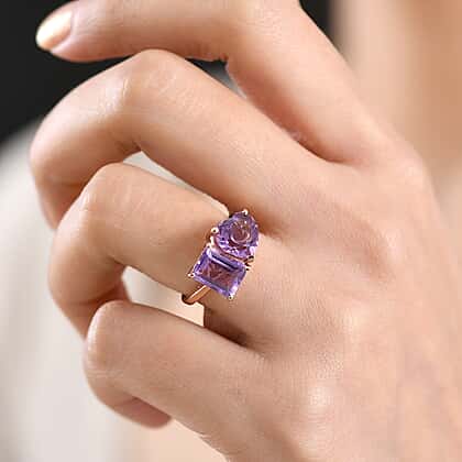 D'Joy AAA Rose De France Amethyst Toi et Moi Ring in Rose Gold Plated Sterling Silver 4.80 Ct.