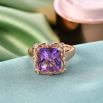 D'Joy AAA Rose De France Amethyst & White Zircon Cushion-Cut Halo Ring in Rose Gold Plated Sterling Silver 4.50 Ct.