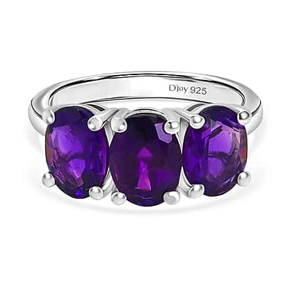 D'joy African Amethyst Ring in Rhodium Overlay Sterling Silver 3.43 Ct.