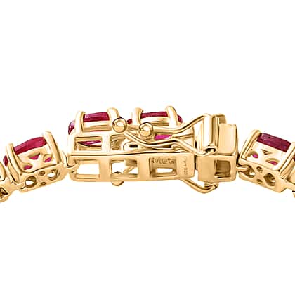 D'Joy African Ruby Bracelet (Size 6.5) with GB Lock Box in 18K Vermeil Yellow Gold Plated Sterling Silver 17.97 Ct, Silver Wt. 8.06 Gms.