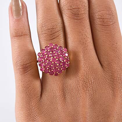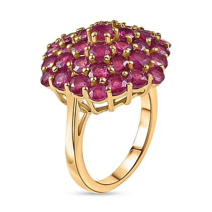 D'Joy African Ruby Cluster Ring in 18K Vermeil Yellow Gold Plated Sterling Silver 5.33 Ct