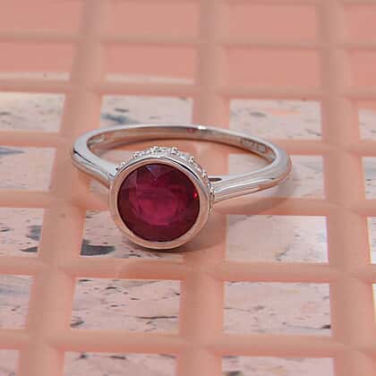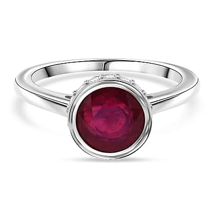 D'Joy African Ruby & Moissanite Ring in Rhodium Overlay Sterling Silver 2.23 Ct.