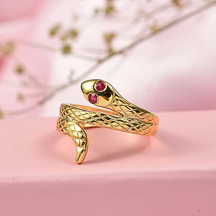D'Joy African Ruby Serpentine Ring in Yellow Gold Plated Sterling Silver