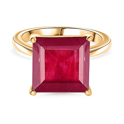 D'Joy African Ruby Solitaire Ring in 18K Vermeil Yellow Gold Plated Sterling Silver 10.27 Ct.