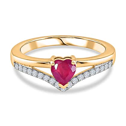 D'Joy African Ruby, White Zircon Fancy Ring in 18K YG VermeilSterling Silver 0.968 Ct.