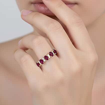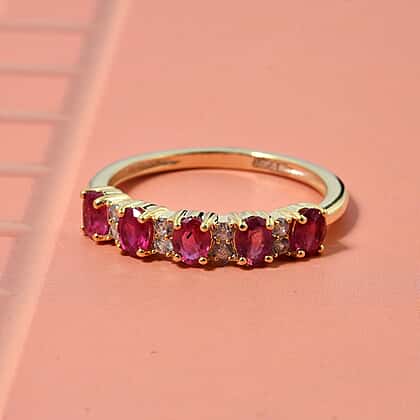 D'Joy African Ruby & White Zircon Ring in Yellow Gold Plated Sterling Silver 1.00 Ct.