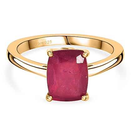 Add a bold touch of colour to your jewellery collection with this African ruby solitaire ring. This enchanting ring showcases a vivid centre ruby prized for its rich depth and natural rarity. Its cushion-cut profile draws the eye instantly, while the bright white zircon accents bring an added lift of sparkle. The 18K vermeil yellow gold over sterling silver is hypoallergenic, resistant to tarnishing and comfortable for daily wear, making it a reliable choice for sensitive skin. Set in a clean solitaire design symbolising promise and devotion, it’s a piece that feels meaningful the moment it’s slipped on.