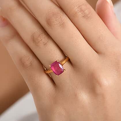 D'Joy African Ruby, White Zircon Solitaire Ring in 18K Vermeil Yellow Gold Plated Sterling Silver 3.63 Ct.