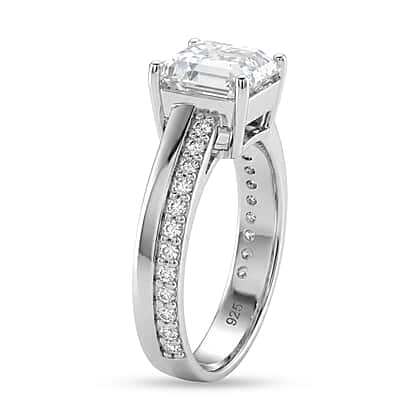 D'Joy Asscher Cut Moissanite Ring in Rhodium Overlay Sterling Silver 3.26 Ct.
