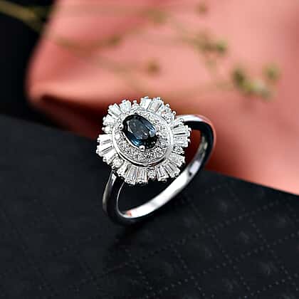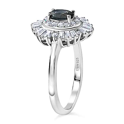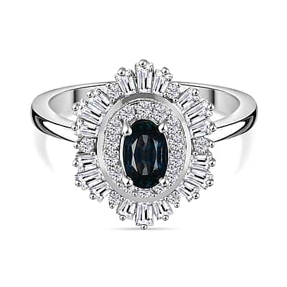 D'Joy Australian Sapphire & Moissanite Cluster Ring in Rhodium Overlay Sterling Silver 1.32 Ct.