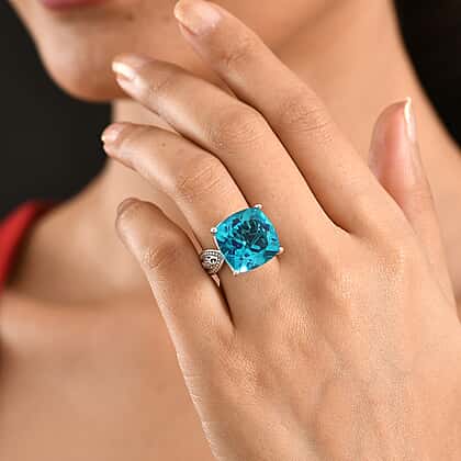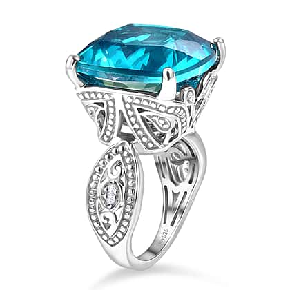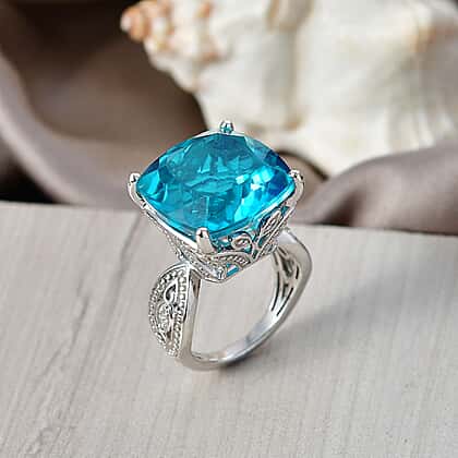 D'Joy Capri Blue Triplet Quartz & White Zircon Ring in Rhodium Overlay Sterling Silver 16.46 Ct.