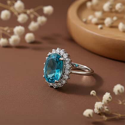 D'Joy Capri Blue Triplet Quartz & White Zircon Ring in Rhodium Overlay Sterling Silver 7.27 Ct.