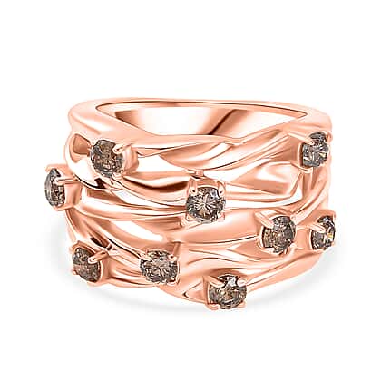 D'Joy Champagne Diamond Fancy Ring in 18K RG VermeilSterling Silver, Silver Wt.9.17 Gms 1.044 Ct.
