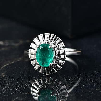 This striking solitaire ring from D'joy is a perfect fusion of classic and modern beauty, featuring emeraldine triplet quartz. The gemstone, in a rich green hue, lies at the heart of the piece, framed by a radiant halo of baguette-style accents in a platinum overlay finish, captivating both hearts and eyes. Set carefully in platinum overlay on 925 sterling silver, this piece ensures durability and lasting shine. The hypoallergenic properties of the metal remain gentle on sensitive skin, offering comfort. The classic beauty of the gemstone on a platinum-tone band makes it ideal for special gifting and personal styling for special occasions.