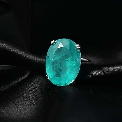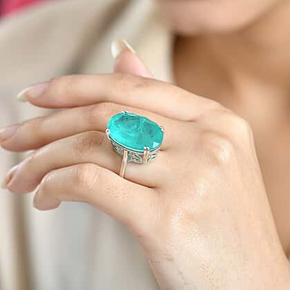 D'Joy Emeraldine Triplet Quartz Solitaire Ring in Rhodium OverlaySterling Silver, Silver Wt.5.5 Gms 27.137 Ct.