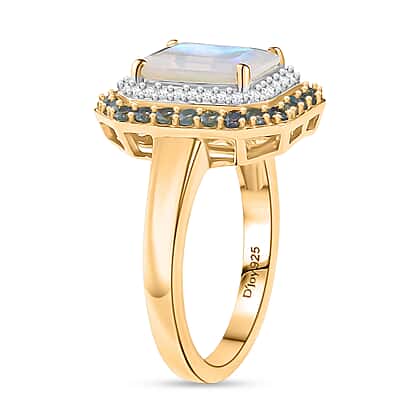 D'Joy Ethiopian Opal, Alexandrite and White Zircon Double Halo Ring in 18K Vermeil Yellow Gold Plated Sterling Silver 2.20 Ct.