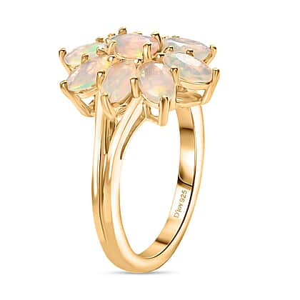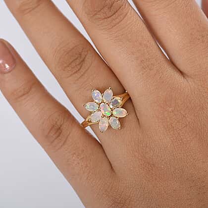 D'joy Ethiopian Opal Cluster Celestial Bloom Ring in Yellow Gold Plated Sterling Silver 1.46 Ct.