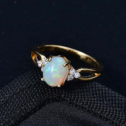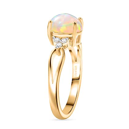 D'Joy Ethiopian Opal, Moissanite Ring in 18K Vermeil Yellow Gold Plated Sterling Silver