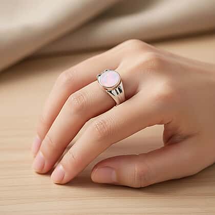 D'Joy Ethiopian Opal Ring in Rhodium Overlay Sterling Silver 1.12 Ct, Silver Wt. 5.00 Gms.