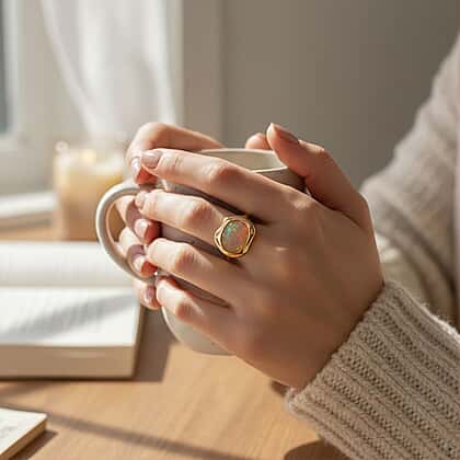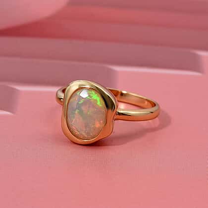 D'Joy Ethiopian Opal Ring in Yellow Gold Plated Sterling Silver 1.12 Ct.