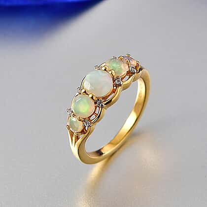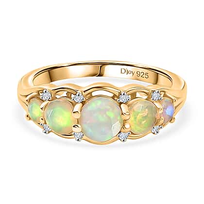 D'Joy Ethiopian Opal, White Zircon Fancy Ring in 18K YG PlatingSterling Silver 0.948 Ct.
