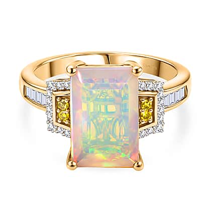 D'Joy Ethiopian Opal, Yellow Diamond & White Diamond Ring in 18K Vermeil Yellow Gold Plated Sterling Silver 2.63 Ct.