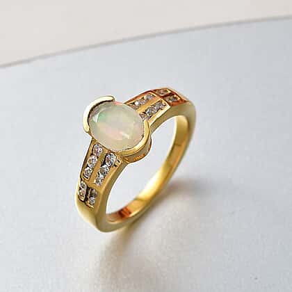 D'Joy Faceted Ethiopian Opal & White Zircon Ring in Yellow Gold Plated Sterling Silver 1.12 Ct.