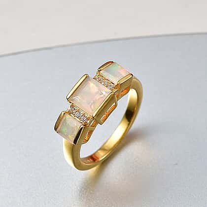 D'Joy Faceted Ethiopian Opal & White Zircon Trilogy Ring in Yellow Gold Plated Sterling Silver 1.23 Ct.