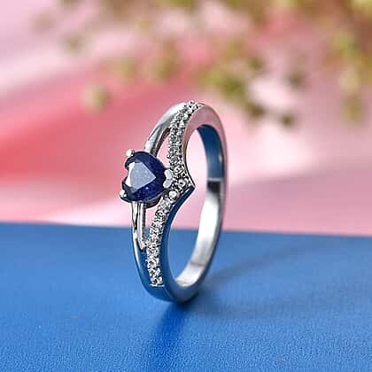 D'Joy Fissure Filled Blue Sapphire, White Zircon Fancy Ring in Rhodium OverlaySterling Silver 1.048 Ct.