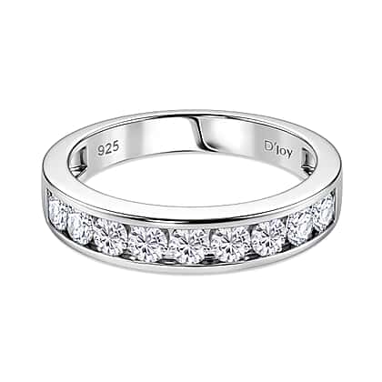 D'Joy GRA Certified Moissanite Channel Band Ring in Rhodium Overlay Sterling Silver 1.00 Ct.