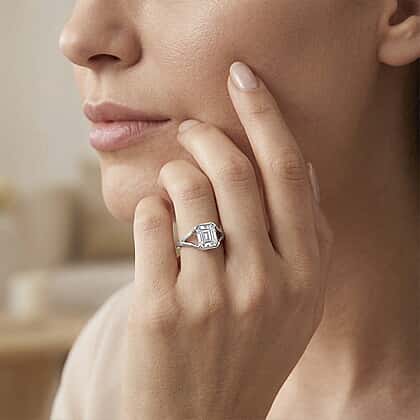 An expression of refined brilliance, this solitaire ring presents a moissanite centre that captures light with remarkable clarity and fire. The clean, structured setting frames the stone with quiet precision, allowing its luminous character to remain the focal point. Crafted in rhodium overlay on 925 sterling silver, the cool-toned finish lends a sleek, polished surface that enhances the overall radiance. The elevated design introduces a sense of lightness and balance, while the gentle contours of the band ensure a comfortable fit. A piece that reflects modern restraint, where brilliance and form exist in harmonious measure.