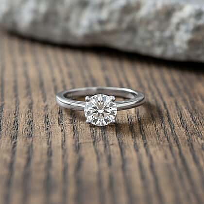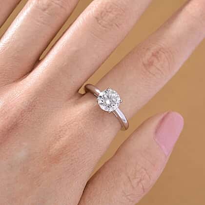 A round-cut moissanite solitaire ring can become a strong and stylish addition to any stack. Like this D'Joy this round moissanite solitaire ring crafted in rhodium overlay sterling silver shines with contemporary confidence. The center stone’s perfect facets are all about flawless sparkle and fire, lifted by a sleek silver band that keeps the look polished, modern, and fully iconic. Whether worn as a statement, a promise, or an everyday essential, this ring brings elegance to every detail. It symbolises eternal love and commitment and makes a great choice for those who are drawn to timeless, classic pieces that never go out of style.