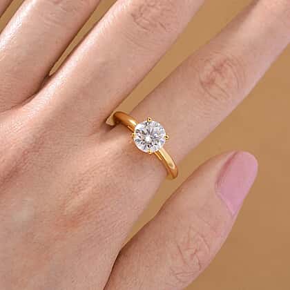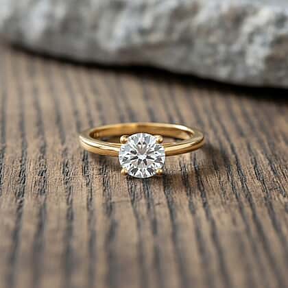 D'Joy GRA Certified RADIANTA Moissanite (VVS-D) Solitaire Ring in Yellow Gold Plated Sterling Silver 1.50 Ct.