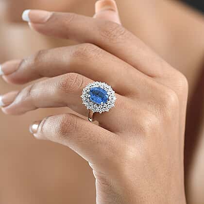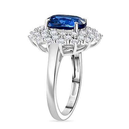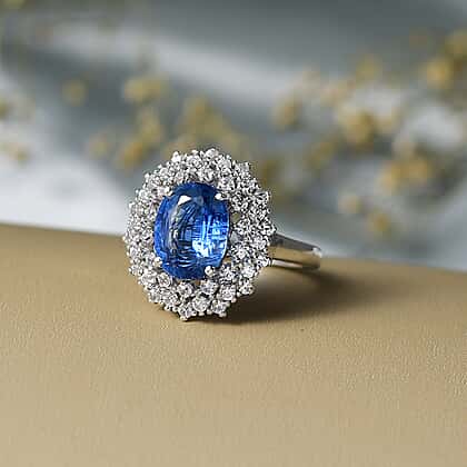 D'Joy 3.4 Ct. Kyanite, White Zircon Double Halo Ring in Rhodium Overlay Sterling Silver