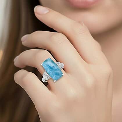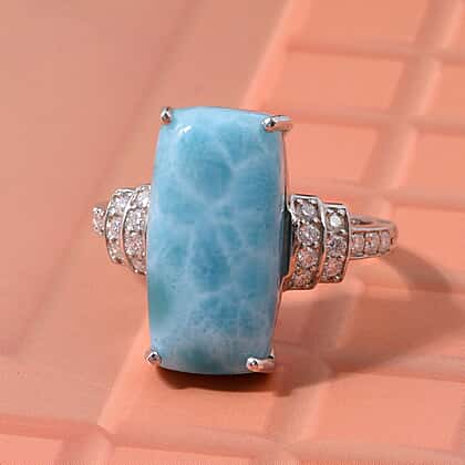 D'Joy Larimar & Moissanite Ring in Rhodium Overlay Sterling Silver 9.58 Ct.