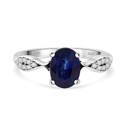D'Joy Masoala Sapphire & White Zircon Ring in Rhodium Overlay Sterling Silver 2.04 Ct.