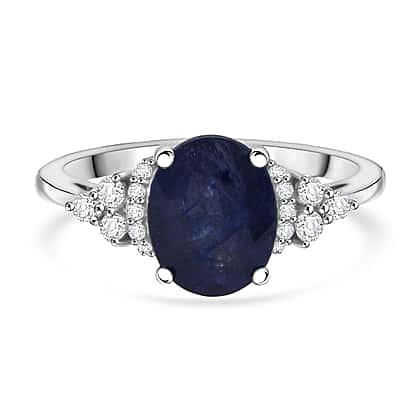 D'Joy Masoala Sapphire & White Zircon Ring in Rhodium Overlay Sterling Silver 3.01 Ct.