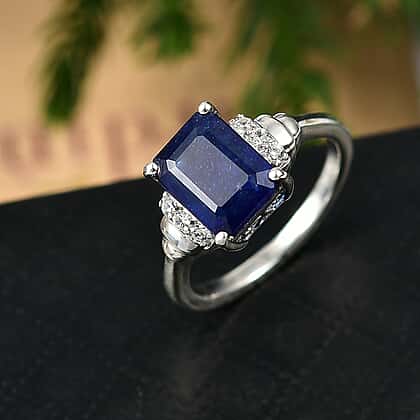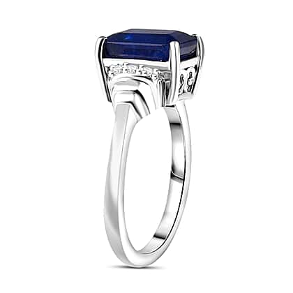 D'Joy Masoala Sapphire & White Zircon Ring in Rhodium Overlay Sterling Silver 3.72 Ct.