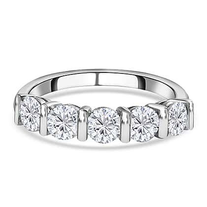 D'Joy Moissanite 5 Stone Ring in Platinum Overlay Sterling Silver 1.14 Ct.