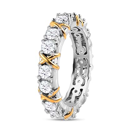 D'Joy Moissanite Band Ring in Platinum Overlay & Yellow Gold Plated Sterling Silver 1.85 Ct.