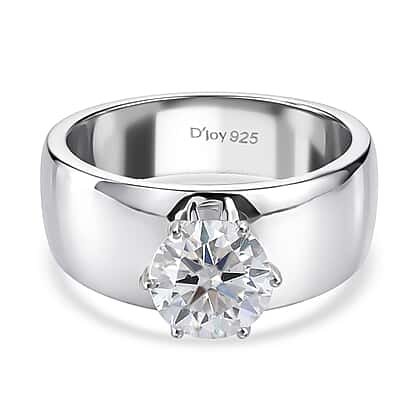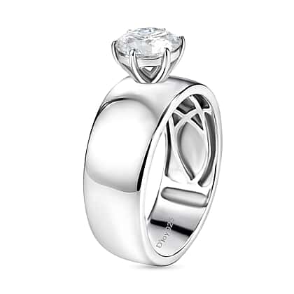 D'Joy Moissanite Band Solitaire Ring in Rhodium Overlay Sterling Silver 1.20 Ct.