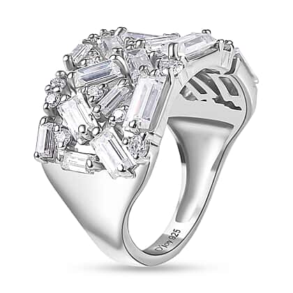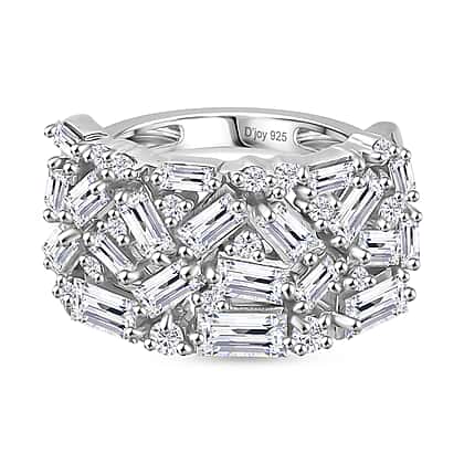 D'Joy Moissanite Cluster Ring in Rhodium OverlaySterling Silver, Silver Wt.5 Gms 2.352 Ct.